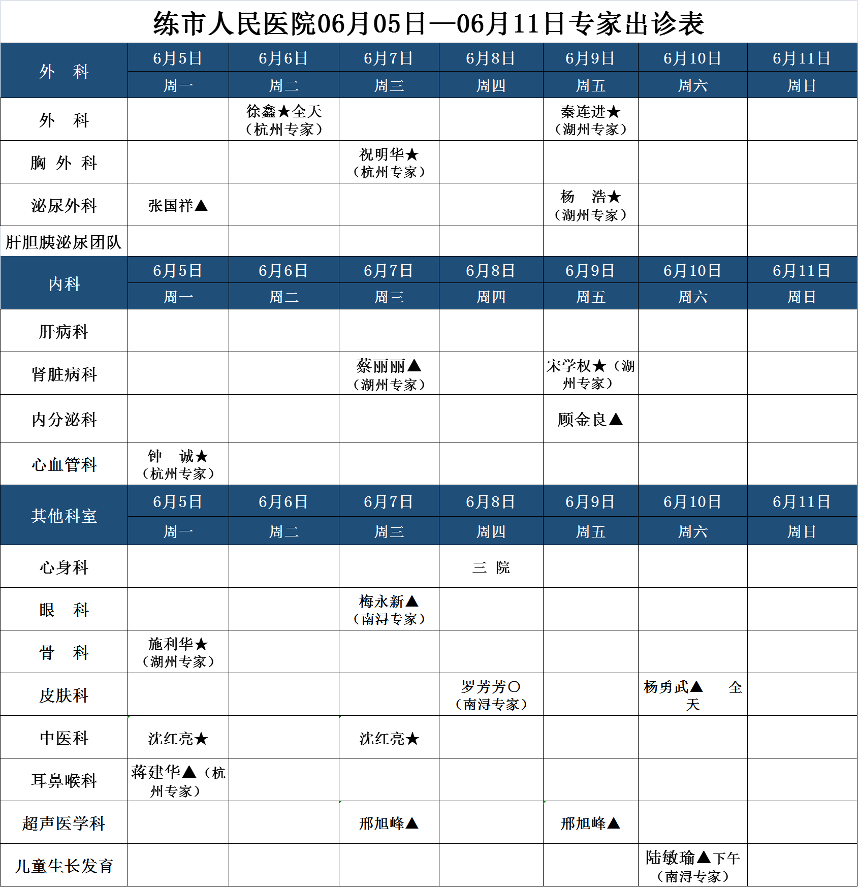 门诊安排表