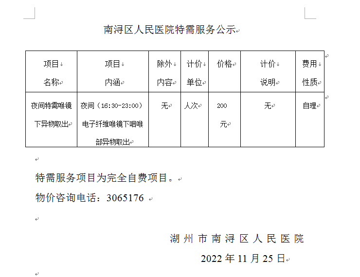 夜间特需喉镜下异物取出公示