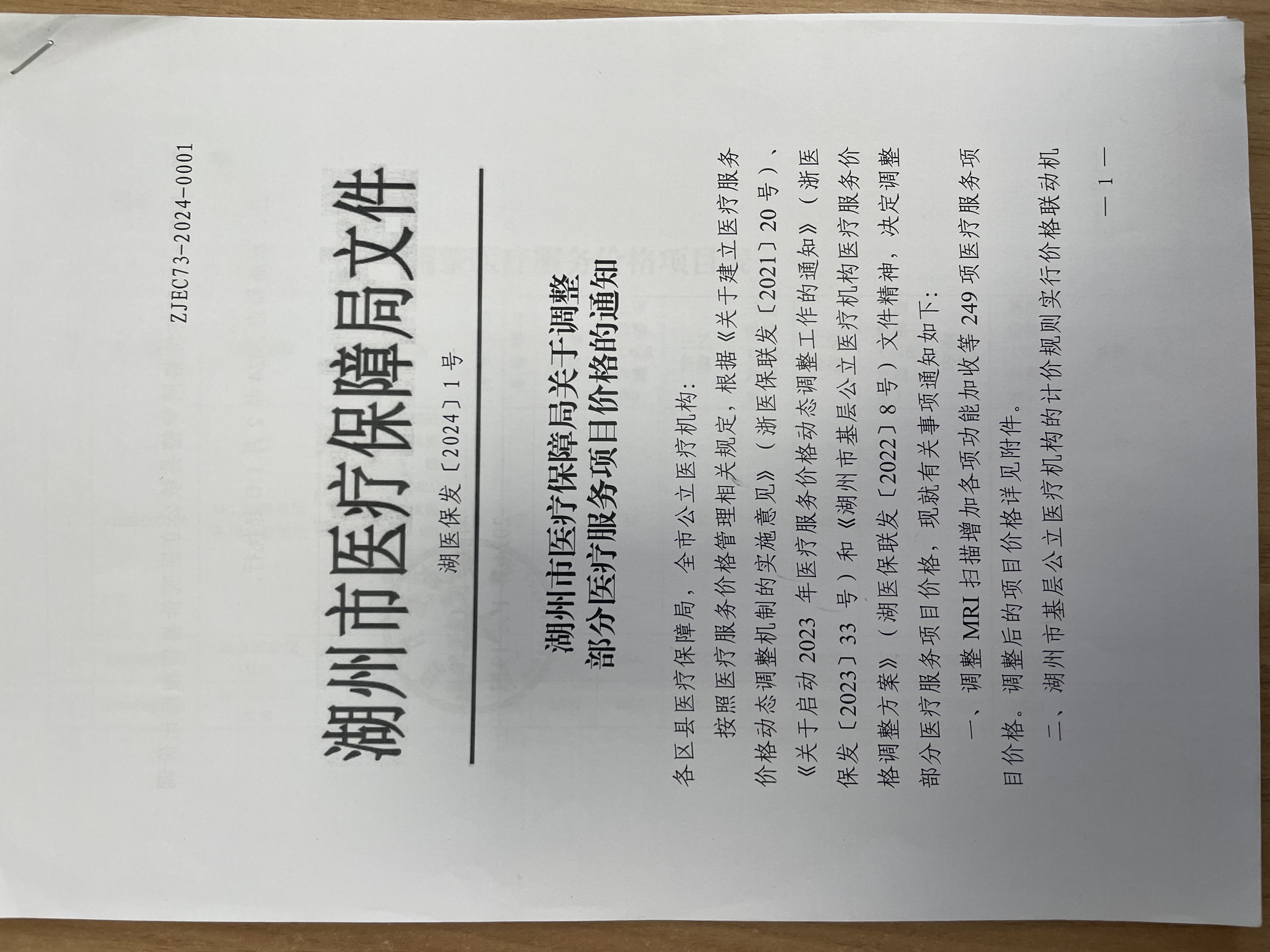 湖州市医疗保障局关于调整完善部分医疗价格项目的通知,2.1号开始执行