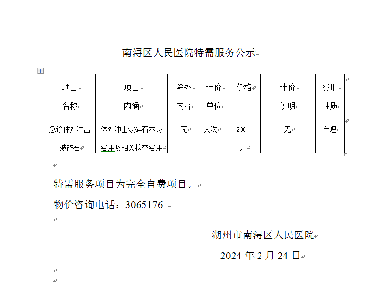 急诊体外冲击波碎石叫班特需项目公示