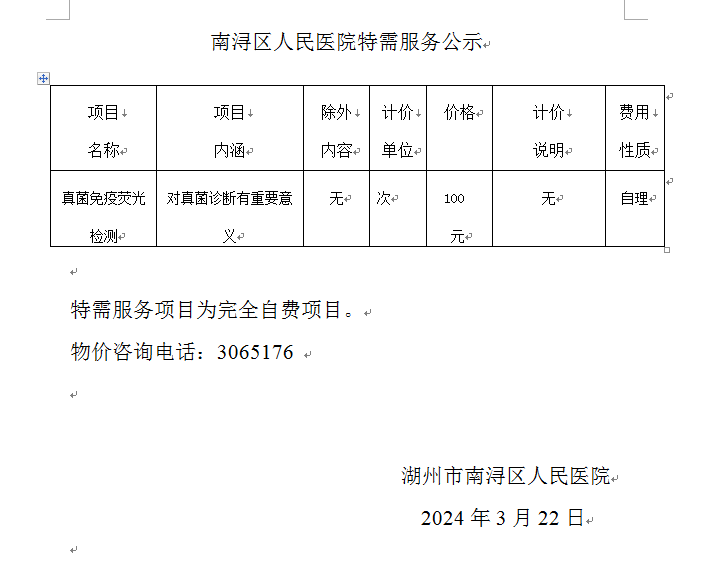 真菌免疫荧光检测特需项目公示