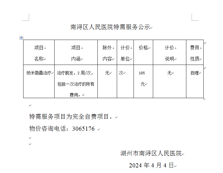 纳米微晶治疗特需项目公示