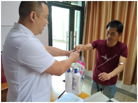 电话通知过后的第二天,我们就展开了抽血工作,医务人员提前到了会议室等着村民,本以为会有大量的村民聚集在会议室,但是实际上却是稀稀落落的,大家基本时间都错开了,所以没有导致大量的工作,先是对村民进行解释,签好知情同意书以及完成个人基本情况的调查。完成后,便可以进行抽血,抽血完成后村民们领到了他们的礼物,每个人都是带着疑惑进来,离开的时候都开心洋溢着笑容,感叹医院的人文关怀。