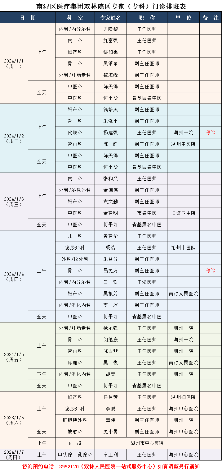 双林人民医院专家排班1.1-1.7