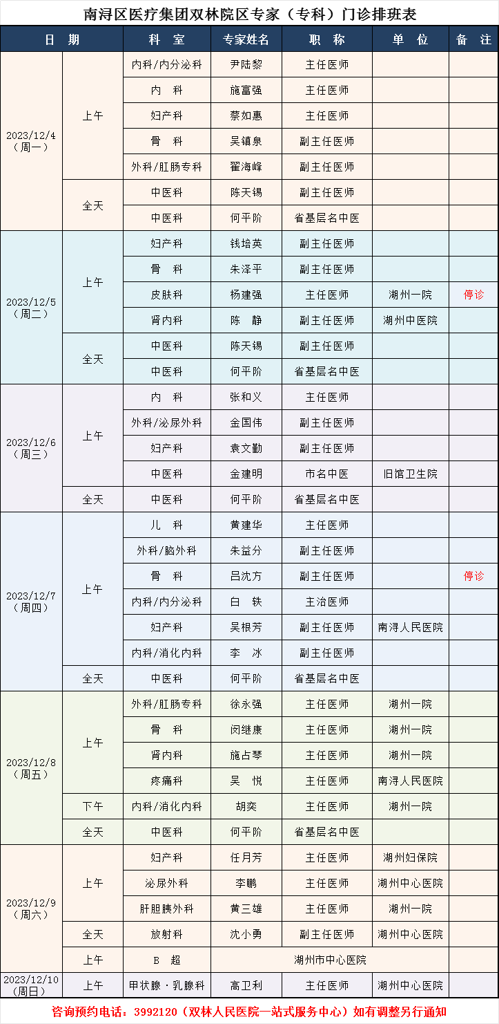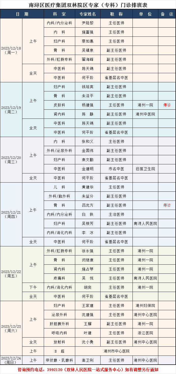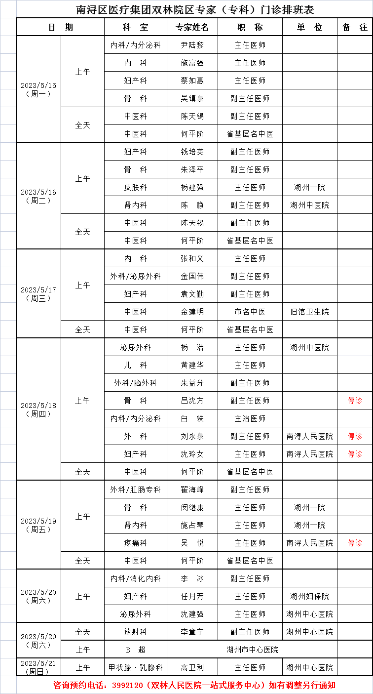 来自:双林人民院区专家排班6.12-6.18