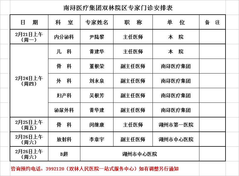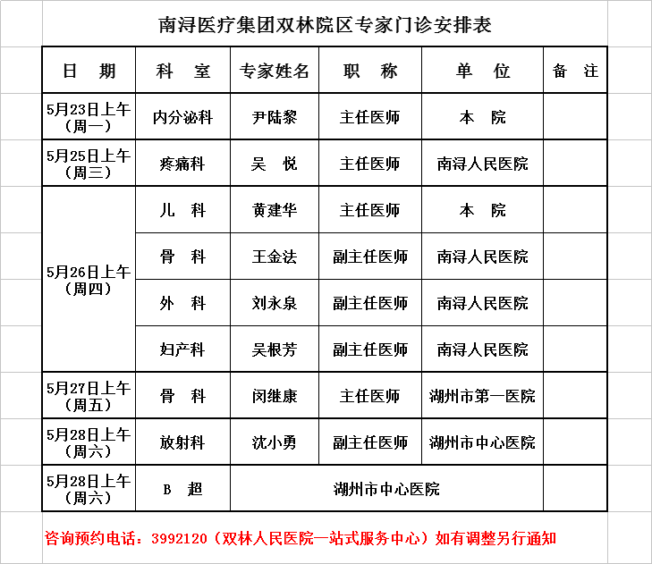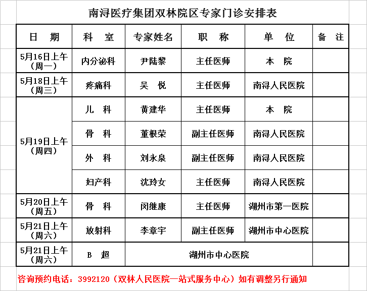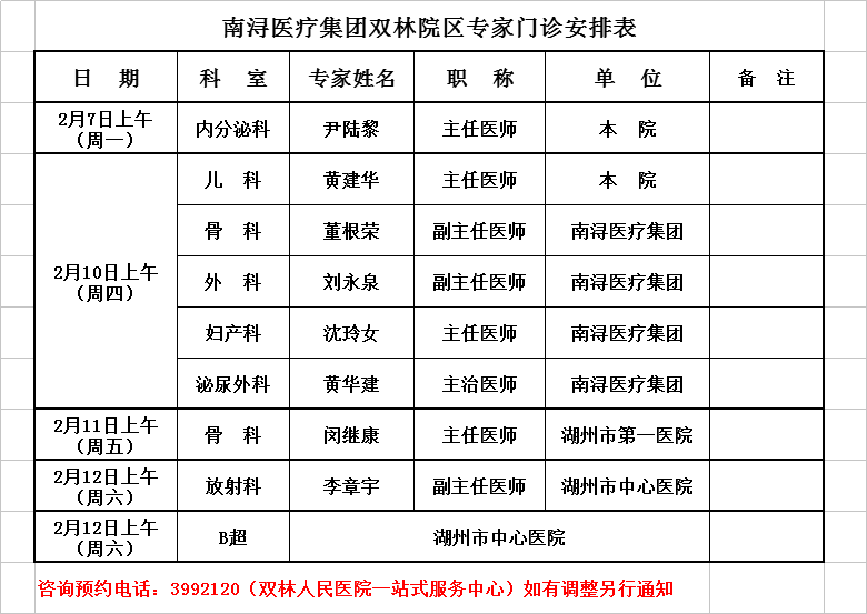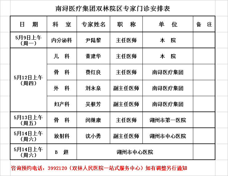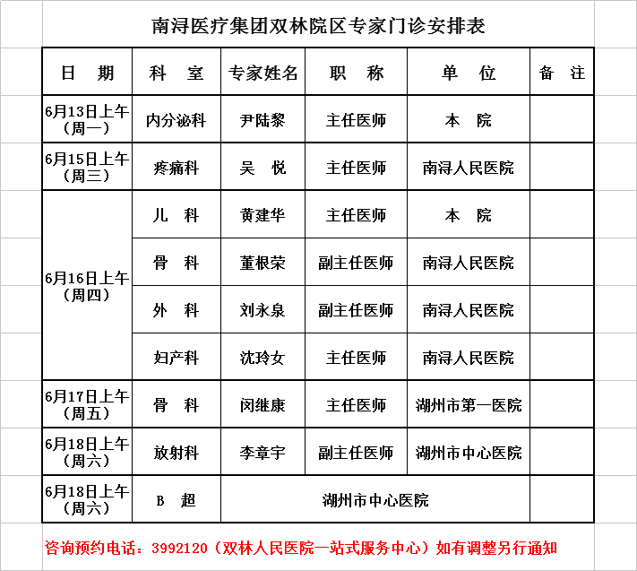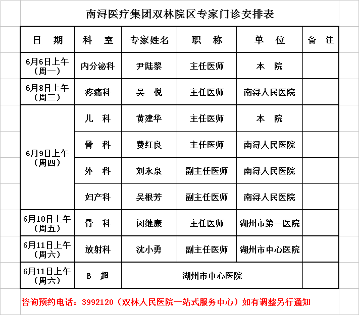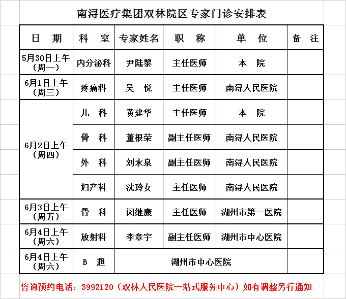 来自:双林院区专家排班2022-6-6/2022-6-11