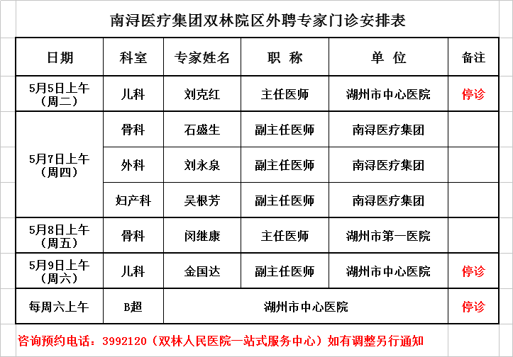 双林院区外聘专家排班2020-5-4/2020-5-10