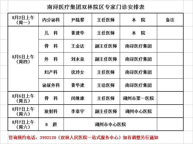 双林医院专家排班2021-8-2/2021-8-7