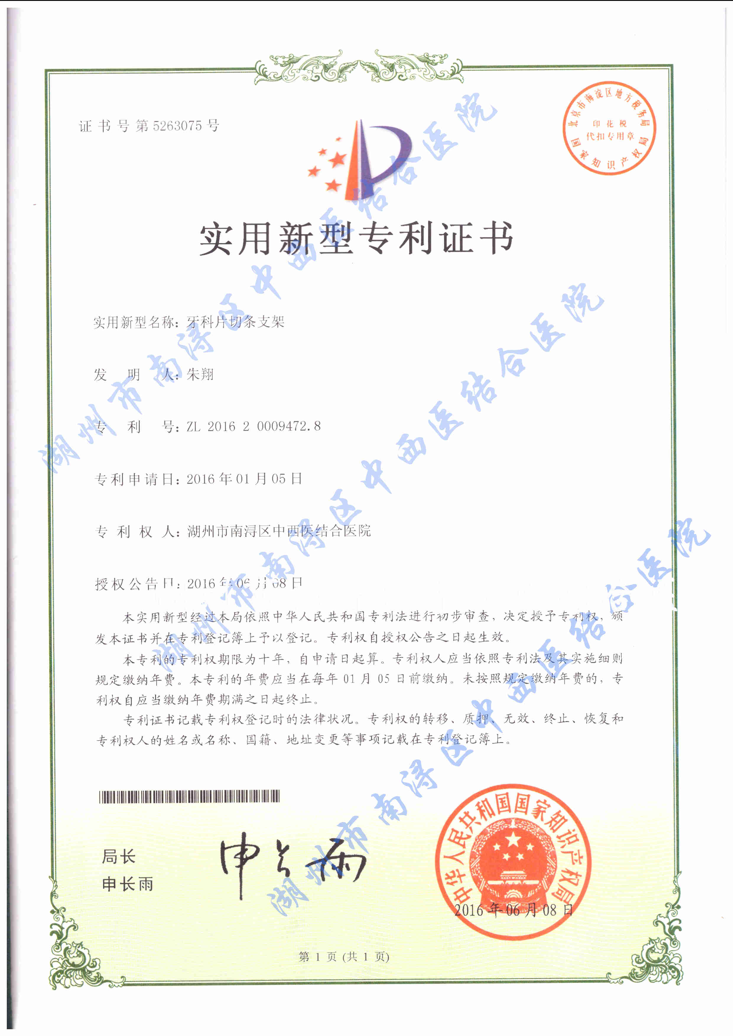【重大喜讯】我院朱翔医师荣获一项国家实用新型专利