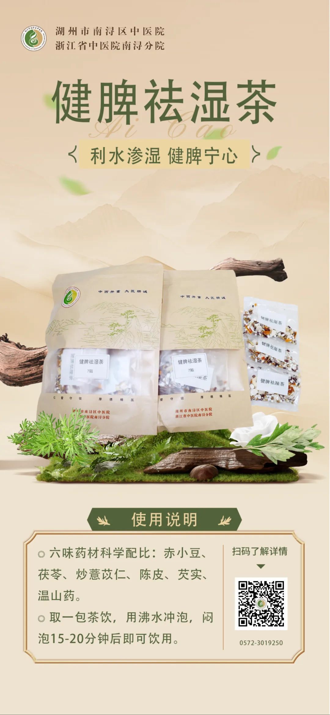 取适量配好的药材(南浔区中医院有配制好的茶包),沸水冲泡。