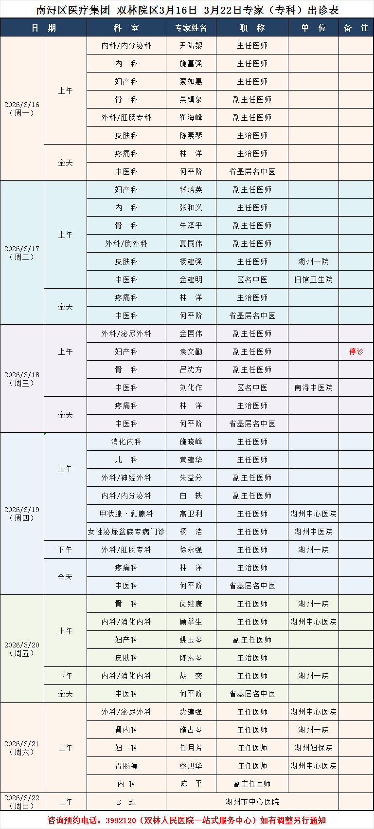 双林人民医院专家排班3.16-3.22