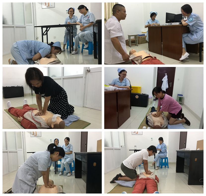 为使全院职工熟悉徒手心肺复苏操作要领、掌握急救技能,医院成立了由分管领导担任组长的考核小组,并制定全员心肺复苏复训操作考核方案及详细的评分标准。整个复训考核活动历时半个月。8月2日,区红十字会救护培训高级讲师、我院公共卫生科张丽玲副主任对全院职工开展集中理论培训、操作示教。8月3日,张丽玲副主任作为特邀考官对各科室选派业务骨干进行操作强化培训,并进行现场考核,合格后由业务骨干对科室内人员进行二次培训。8月中旬,由考核组成员对临床医疗护理人员、医技(药剂)人员、行政后勤人员分三天逐一进行操作考核,考核现场氛围认真、严肃。并对于考核不合格和考核期内因故不能参与考核的人员进行补考,最终全部合格。