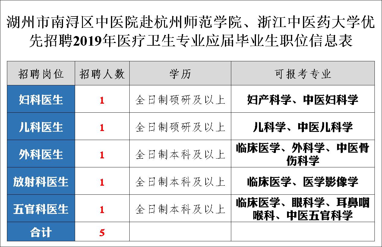 南浔区中医院赴杭州师范大学、浙江中医药大学招聘公告