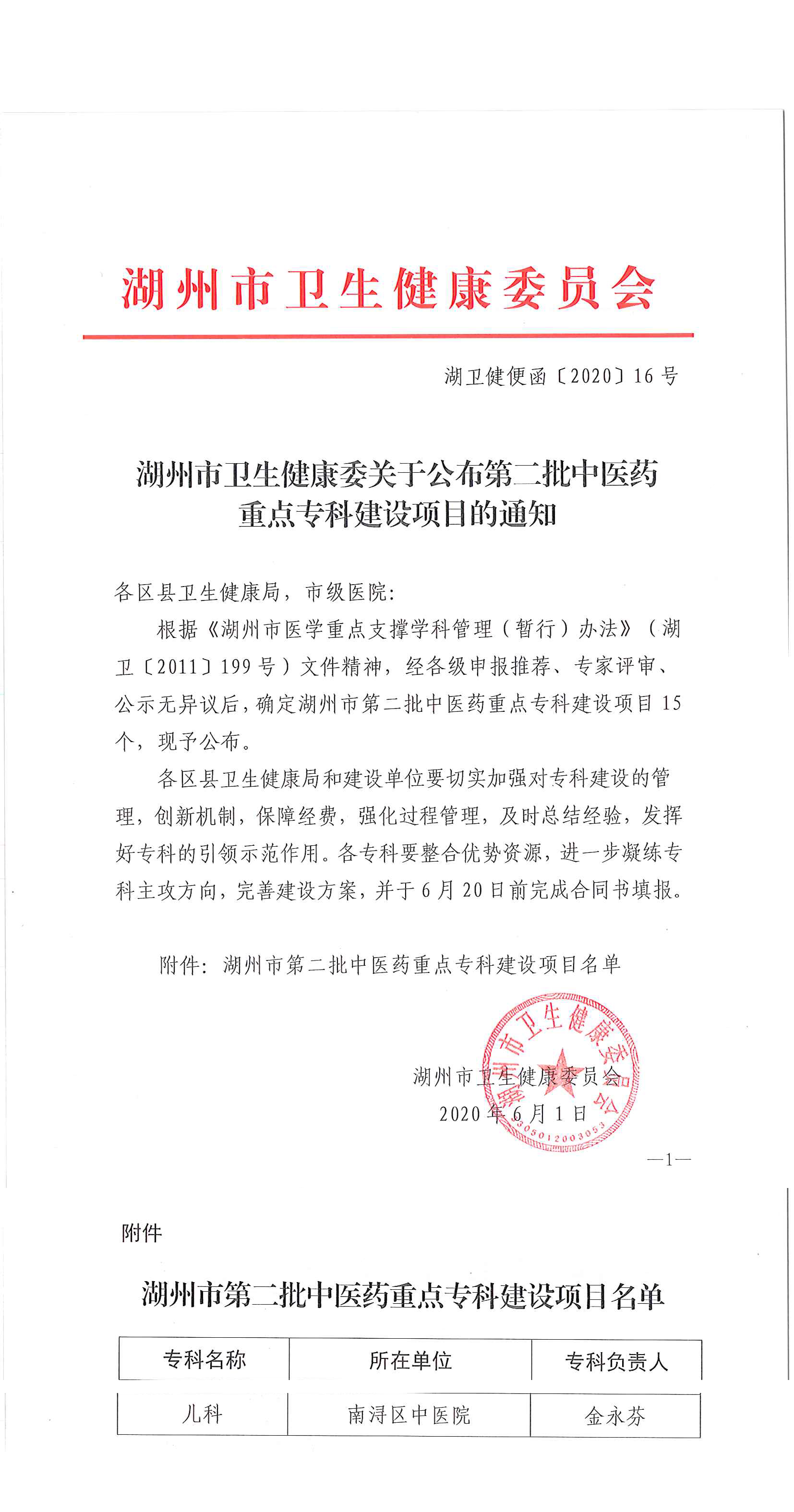 中医儿科入选湖州市中医药重点专科建设项目