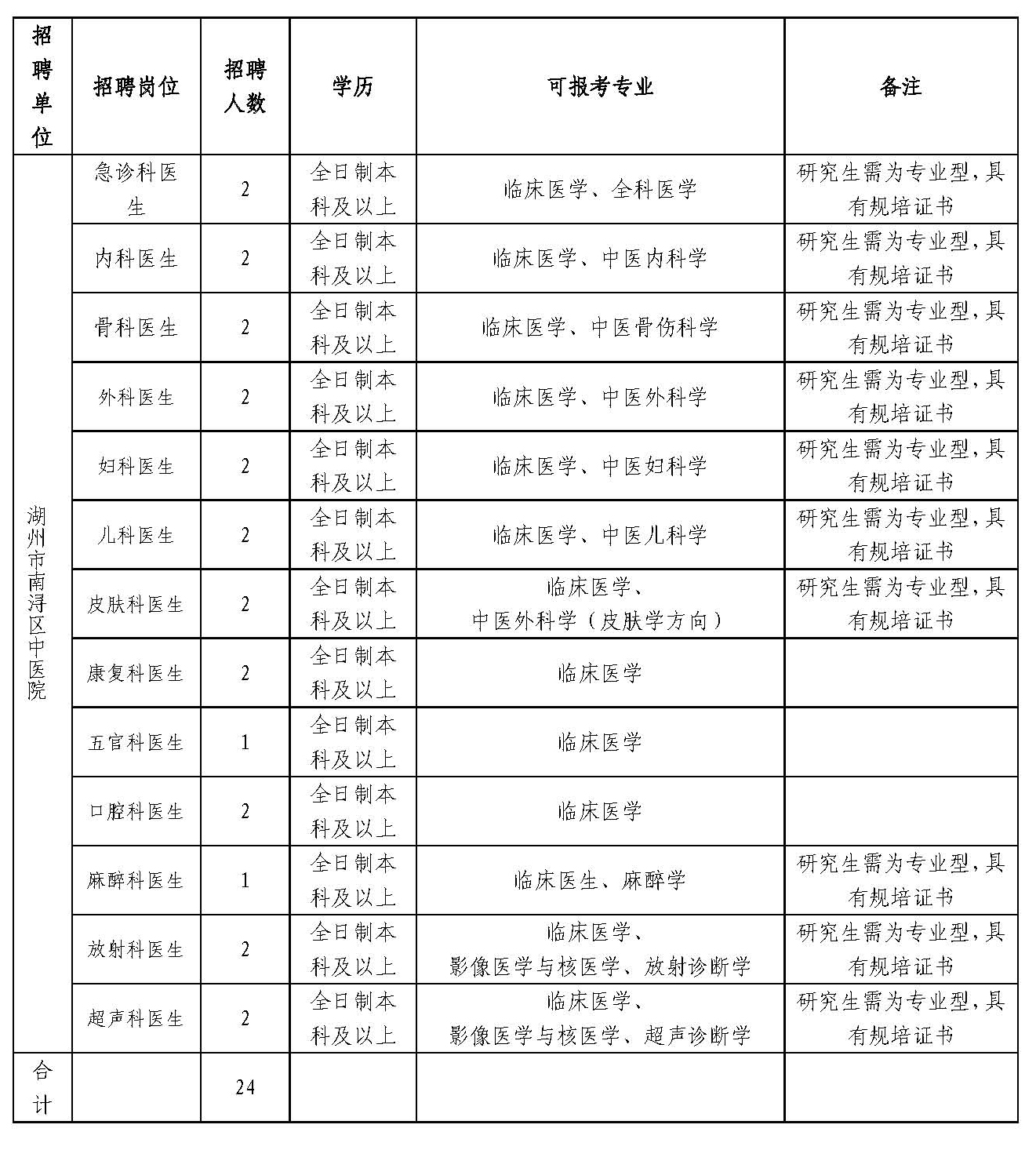 优先招聘2020年医学类专业应届毕业生公告