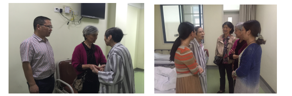 5月7号下午,该院郑林方书记、护理部翁惠英主任一行5人看望慰问了退休后因病长期住市三院的老护士杨妙荷,了解她的病情和生活情况,送去节日的祝福。