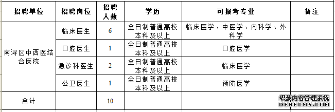 2016年南浔区中西医结合医院招聘应届毕业生职位信息表